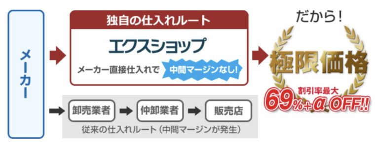 独自の仕入れルートで中間マージンが発生しなく、安値で提供できるのが一目瞭然ですね。